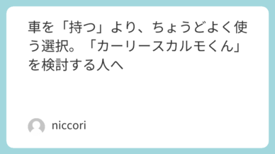 ブログ 車を「持つ」より、ちょうどよく使う選択。「カーリースカルモくん」を検討する人へ