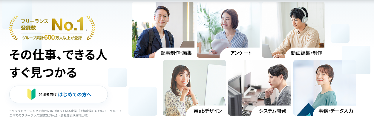 「インターネットを通じて人と仕事をつなぐ」ことを目的に2011年に設立され、現在は国内最大規模のクラウドソーシングプラットフォームとして多くの企業・個人に利用されています。